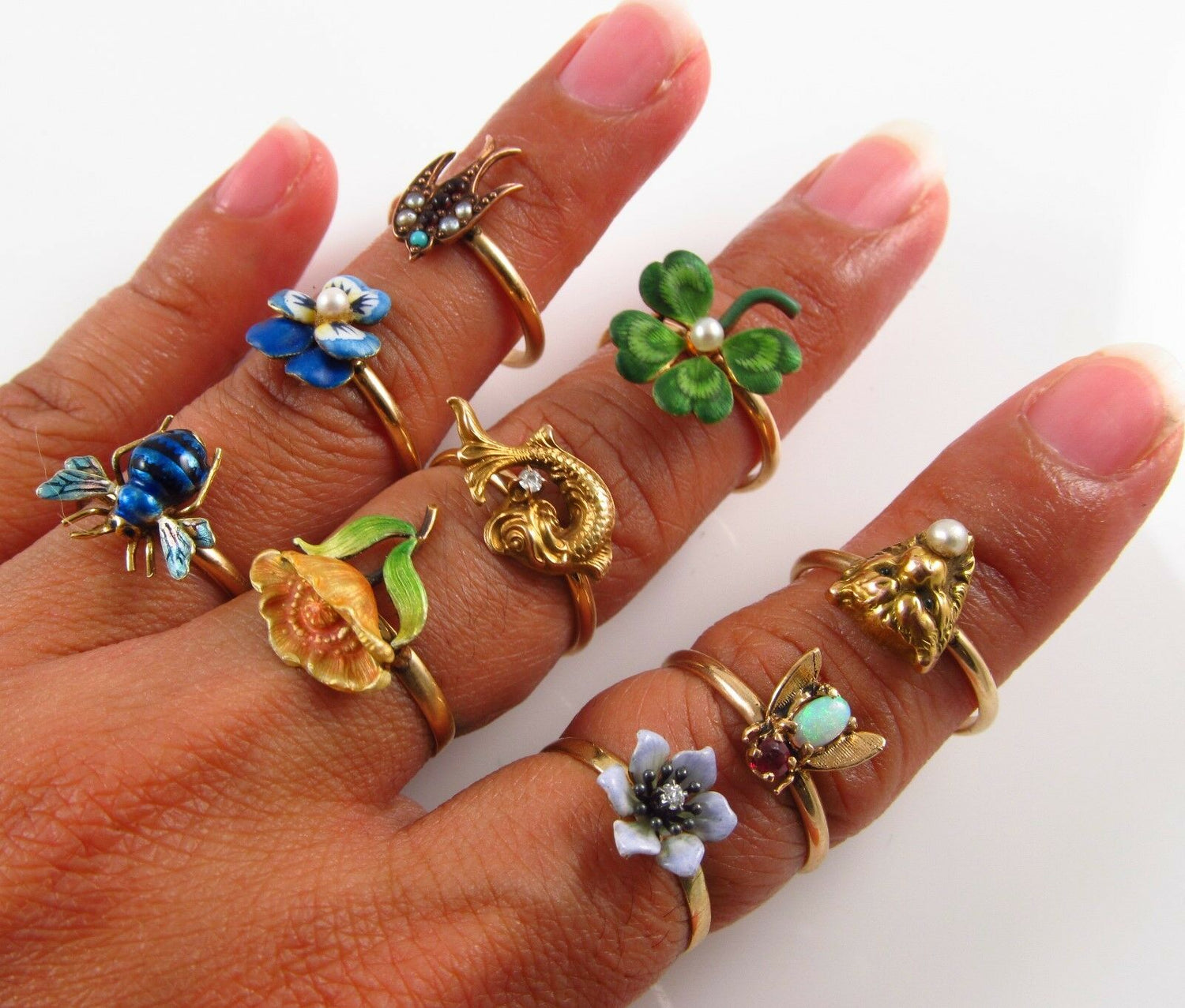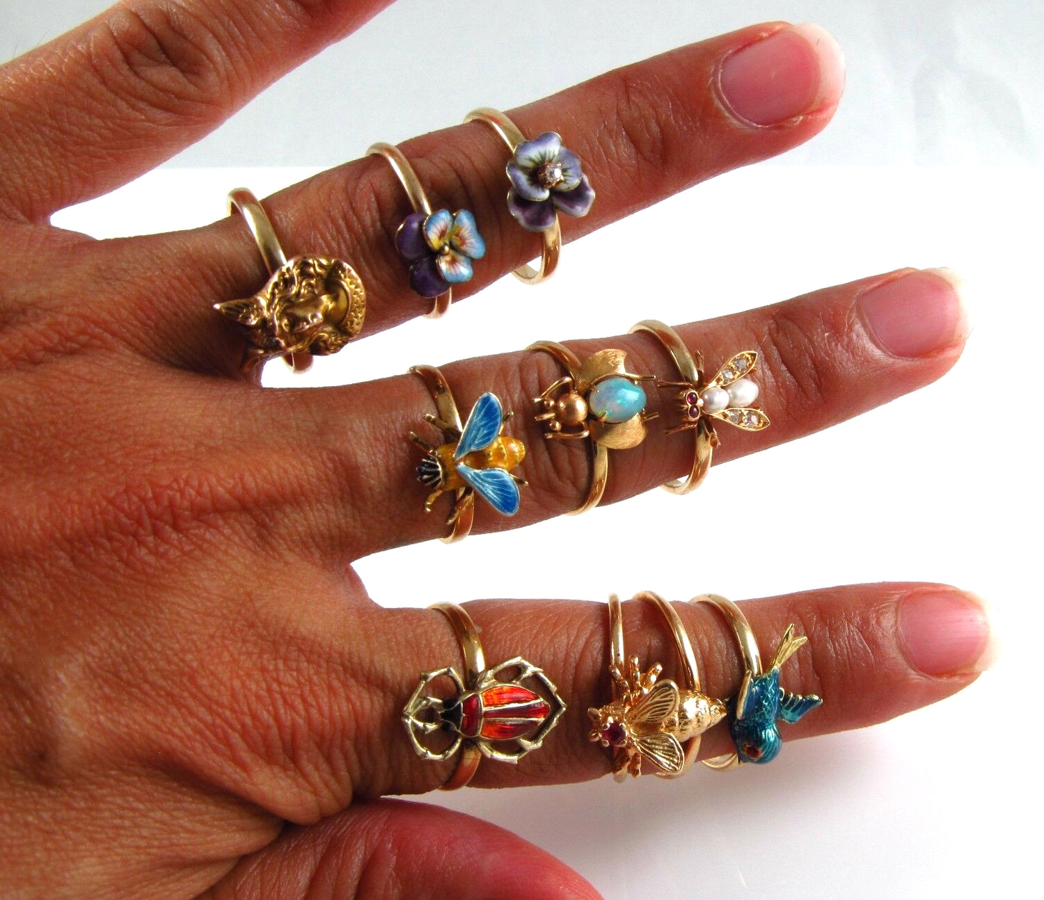 Check out our amazing assortment of Vintage and Antique fine jewelry conversions. Insects, frogs, flowers and birds "oh my", we have them all here.